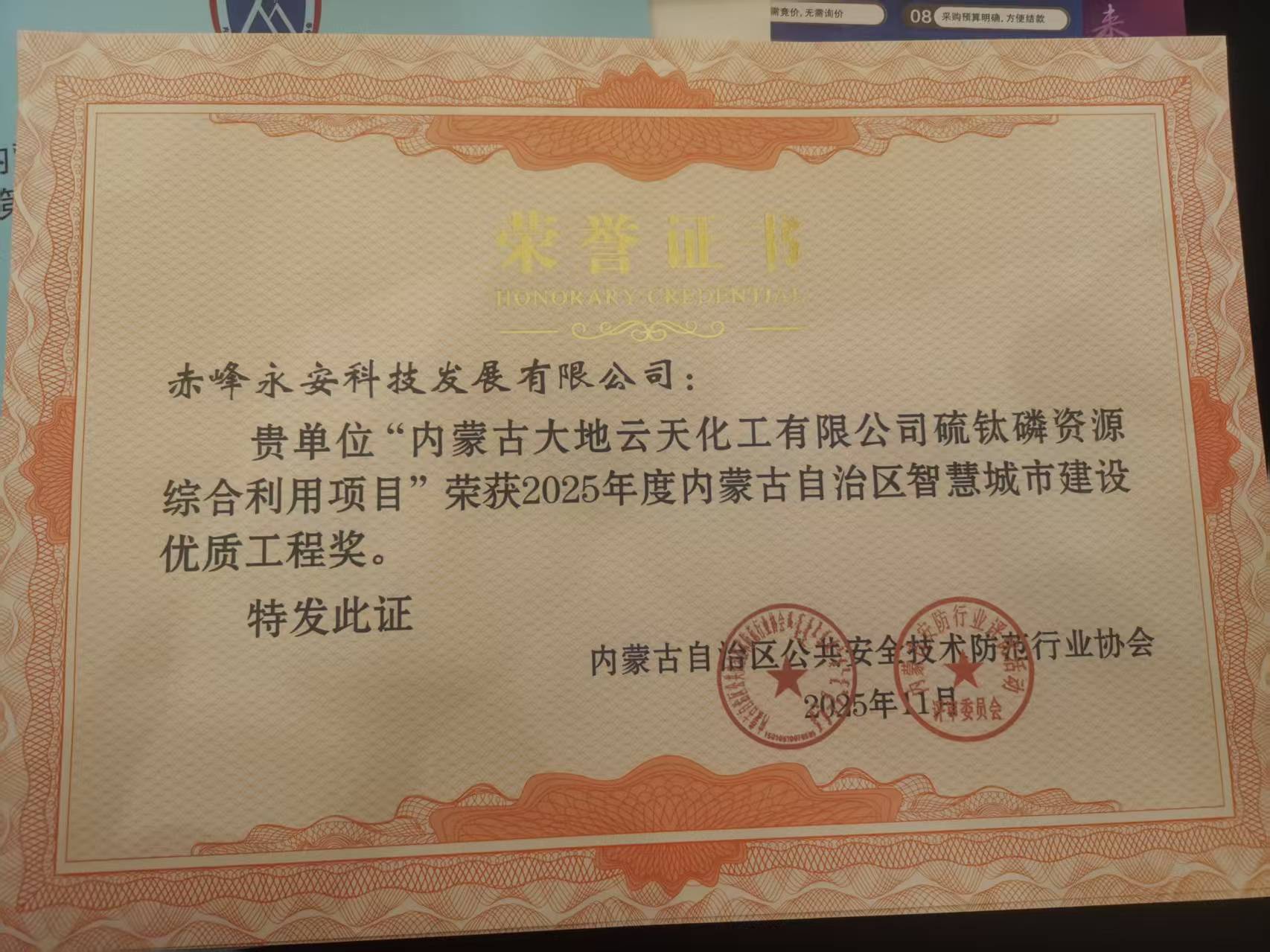 2025 年 11 月 28 日,永安科技應(yīng)邀出席內(nèi)蒙古自治區(qū)公共安全技術(shù)防范行業(yè)協(xié)會(huì)第六屆第二次會(huì)員大會(huì),同期還參與了第八屆內(nèi)蒙古安防 “創(chuàng)新 + 智慧” 品牌學(xué)術(shù)會(huì)議。